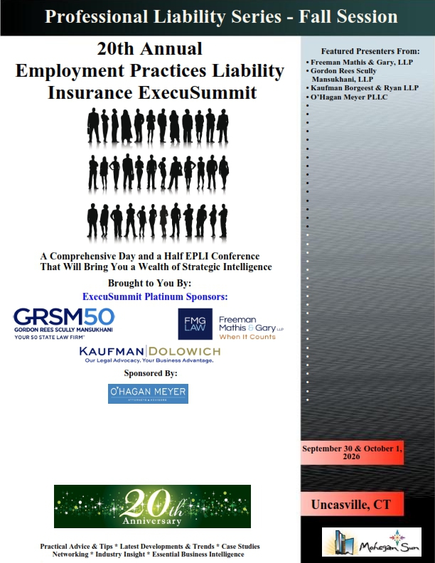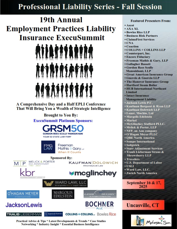 Register Today! The 19th Annual Employment Practices Liability Insurance ExecuSummit - Fall Session. will provoke strategic thinking, give you new insight, open new channels of information & provide you with opportunities to meet & exchange ideas with